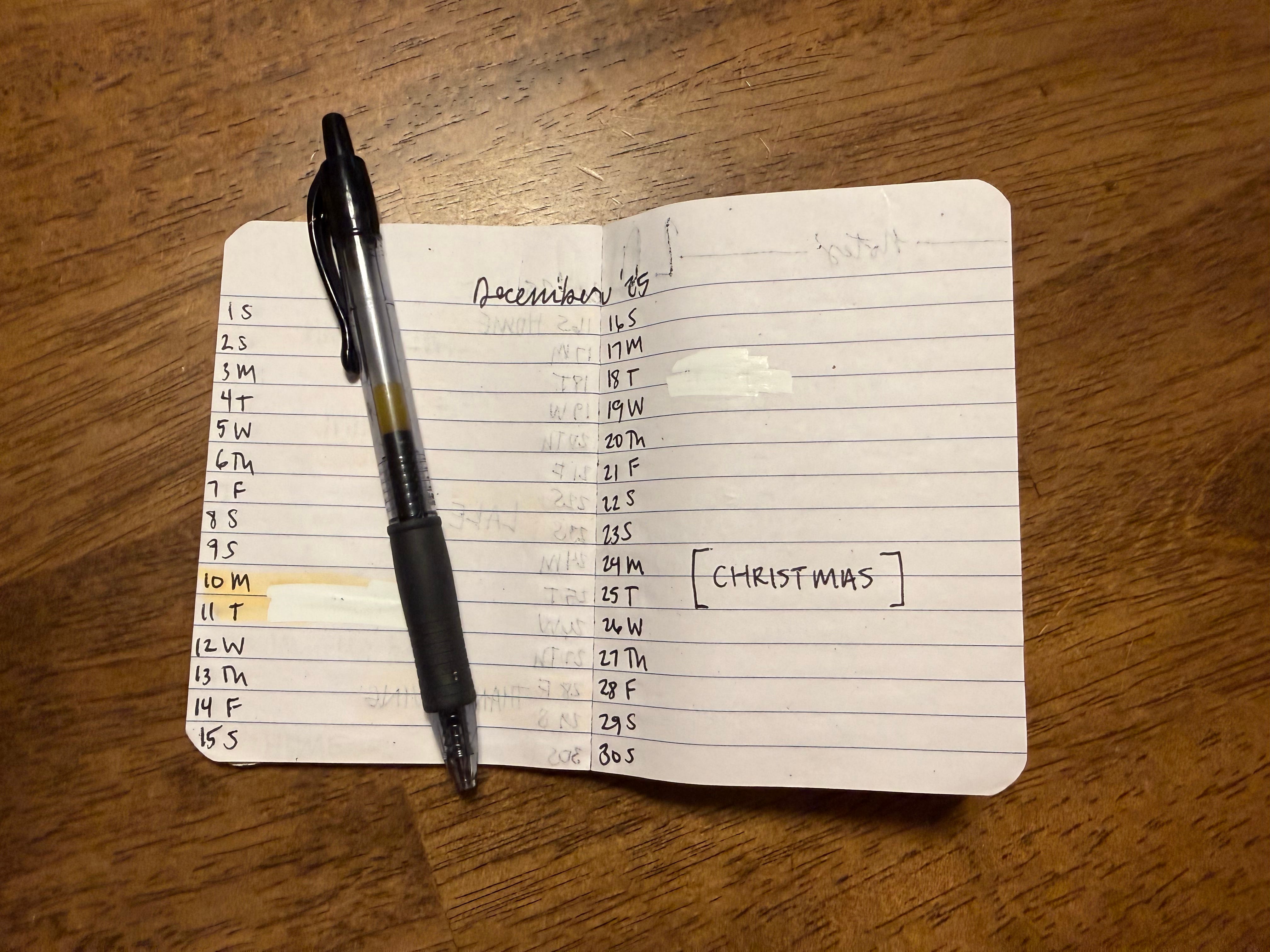 I use a crisp Sterling Ink Common Planner as my daily bible, but it’s helpful to have another place to add dates on the go.